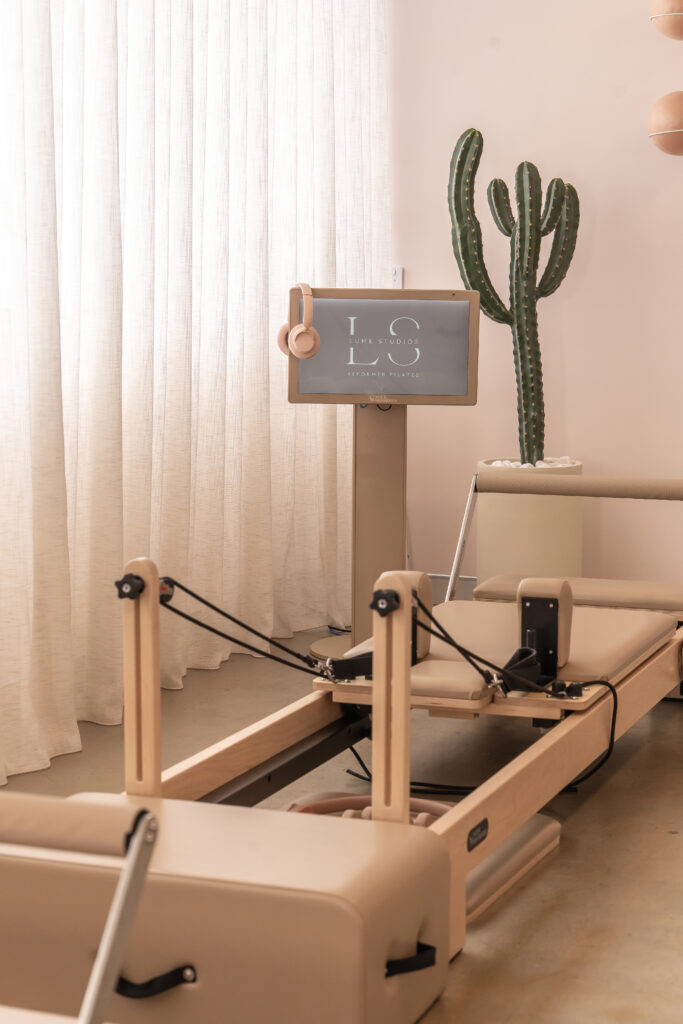 At Lume Studios we do things a little bit different. No set classes, no onsite instructors. Just you, your reformer, headphones, and 800+ instructor videos to choose from.